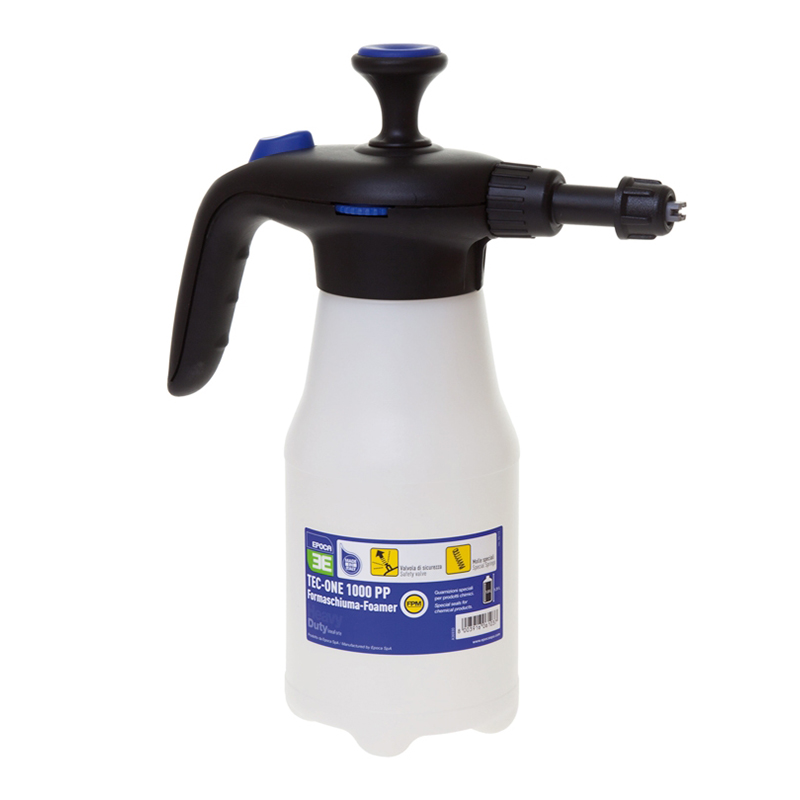 RUČNÝ NAPEŇOVAČ EPOCA TEC ONE FOAMER 1L je profesionálny ručný napeňovač vhodný na aplikáciu peny na menšie a stredné plochy ako aj členité a ťažšie dostupné miesta. Výborná využitie nájdete aj v prípade ak nie je k dispozícii vysokotlakový čistič s napeňovačom. Tryska s penovou dýzou má rozstrek až 110°. Napeňovač je vyrobený z odolného polypropylénu s tesnením z fluórového kaučuku značky Viton, ktoré je odolné voči mnohým chemikáliám.