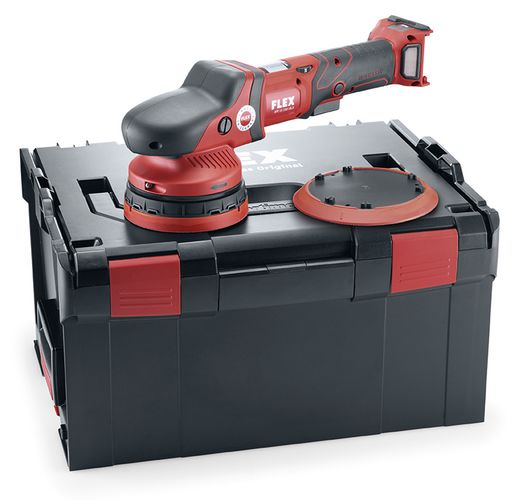 Špeciálne tlmený unášač so suchým zipsom má výšku 10 mm umožňuje rýchlu výmenu leštiacich kotúčov. Držadlový kryt je ergonomicky tvarovaný s pogumovaným Soft Gripom pre lepšie uchopenie. Prepracované vedenie vzduchu umožňuje efektívne chladenie motora a prevodov. Prúd vychádzajúceho vzduchu je vyvedený mimo priestor obsluhy čo zvyšuje komfort pri práci. Na leštičku je možné namontovať špeciálne tlmené unášače FLEX s priemerom 125 a 150 mm. Excentrický pohyb leštiaceho kotúča umožňuje prácu s minimálnym zahrievaním lešteného povrchu. Leštička je kompatibilná so všetkými FLEX 18,0V Li-Ion akumulátormi.
