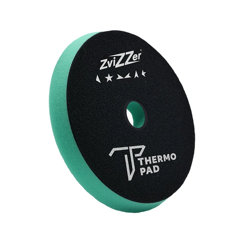 ZVIZZER Thermo Very Hard Green je hrubý leštiaci pad určený na tzv. brúsenie laku (angl. cutting) s unikátnou termostabilnou penou a vysokou reznou silou. Zelený leštiaci pad má vysokú abrazivitu pre odstránenie hrubých škrabancov z laku karosérie.